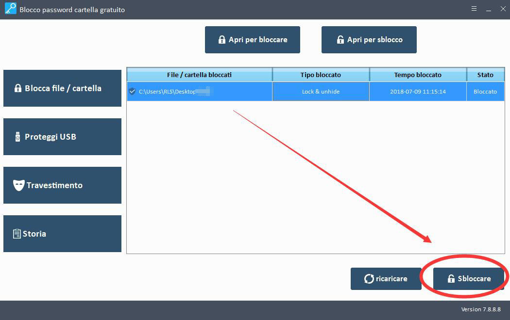 Passaggio 2 Blocca e sblocca file / cartella