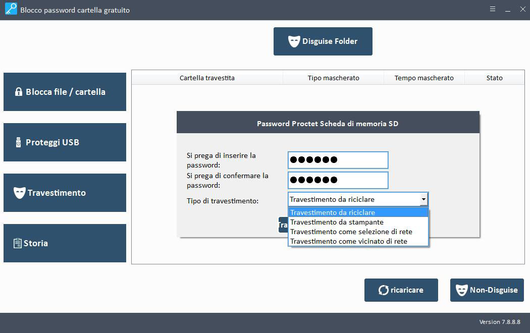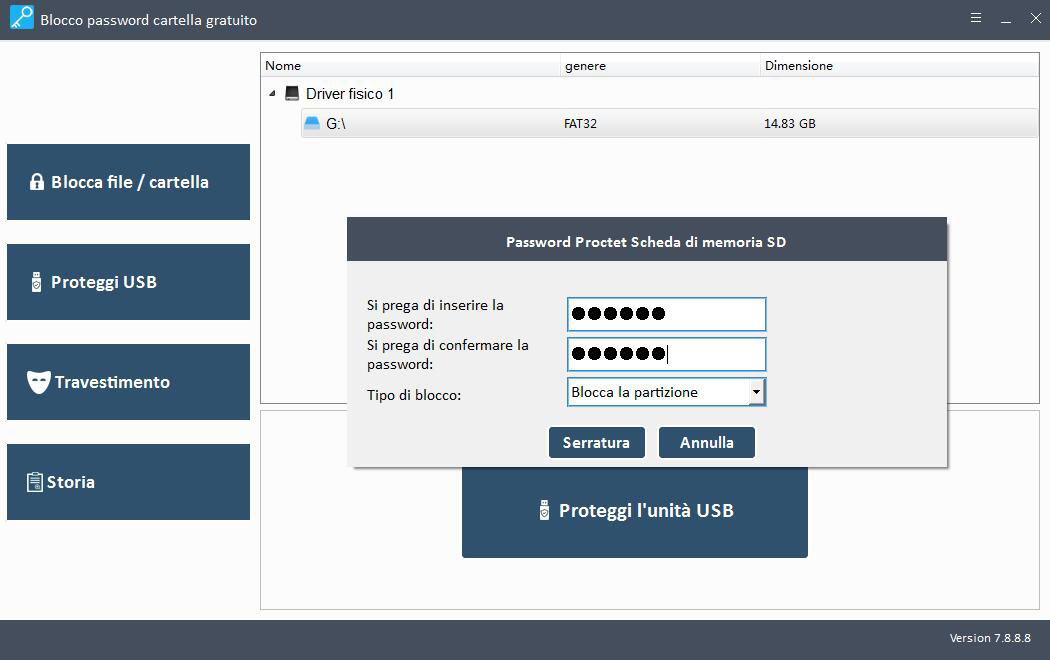 Passaggio 1 Scaricare, installare e avviare il software Password Protect per la scheda di memoria SD.