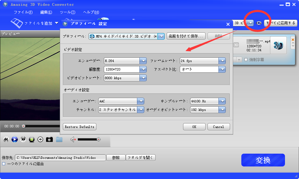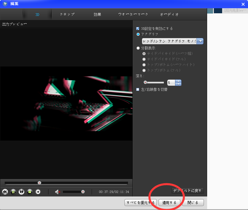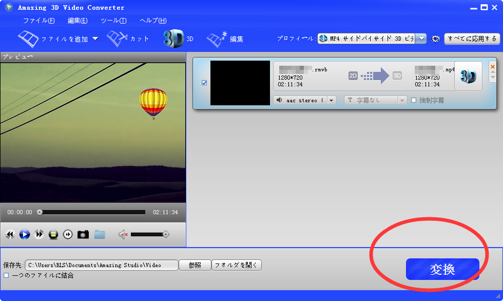 6「変換」をクリックして、2Dビデオの3Dムービーフォーマットへの変換を開始します。。